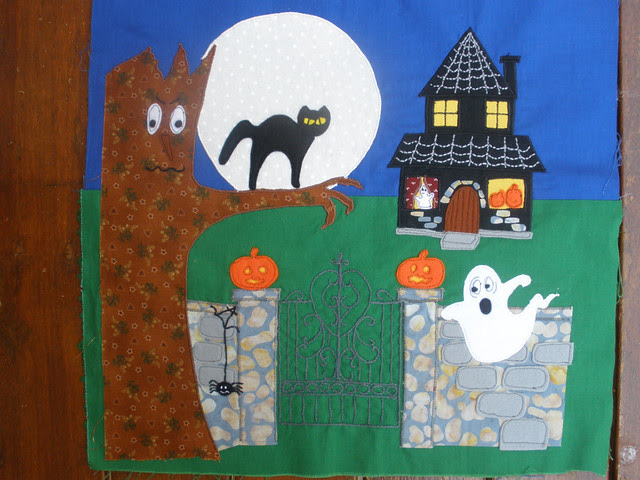 I looked up all sorts of Halloween ideas and created a spooky scene with felt and fabric and stitchery.