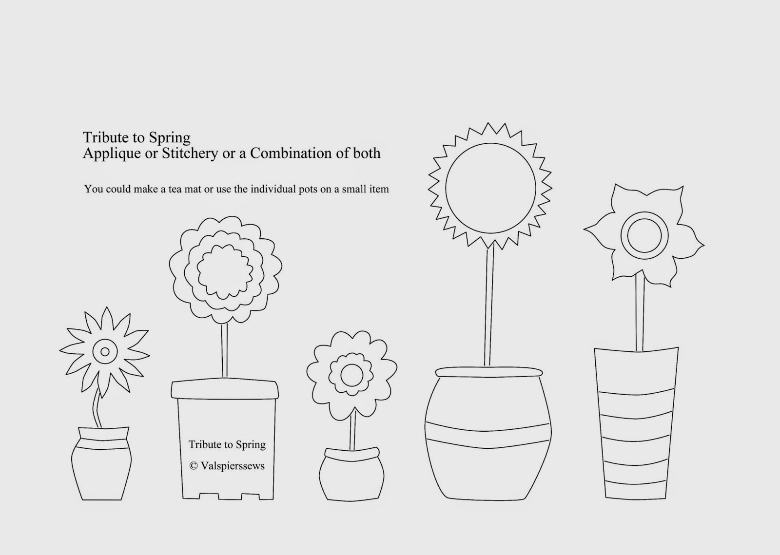 In keeping with the applique theme at least, I have created a small Tribute to Spring with some flower pots and flowers that could be used for applique or stitchery but I think it would look great with a bit of both.